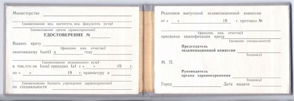 Удостоверение ординатура до 1992