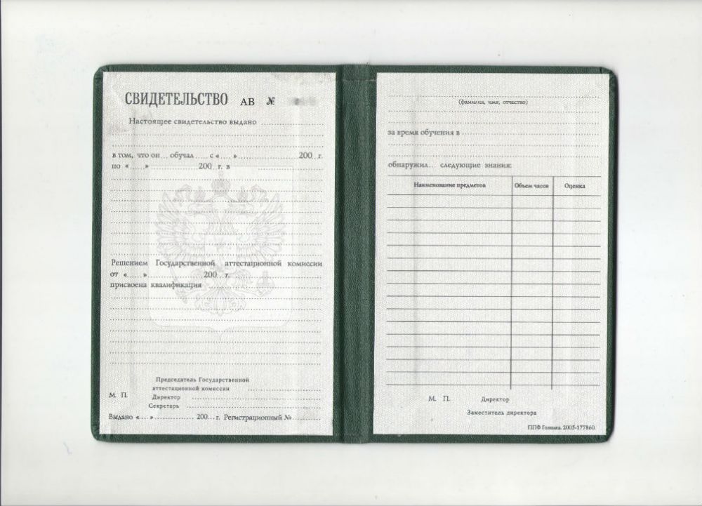 Свидетельство о профессиональном образовании (ПТУ)