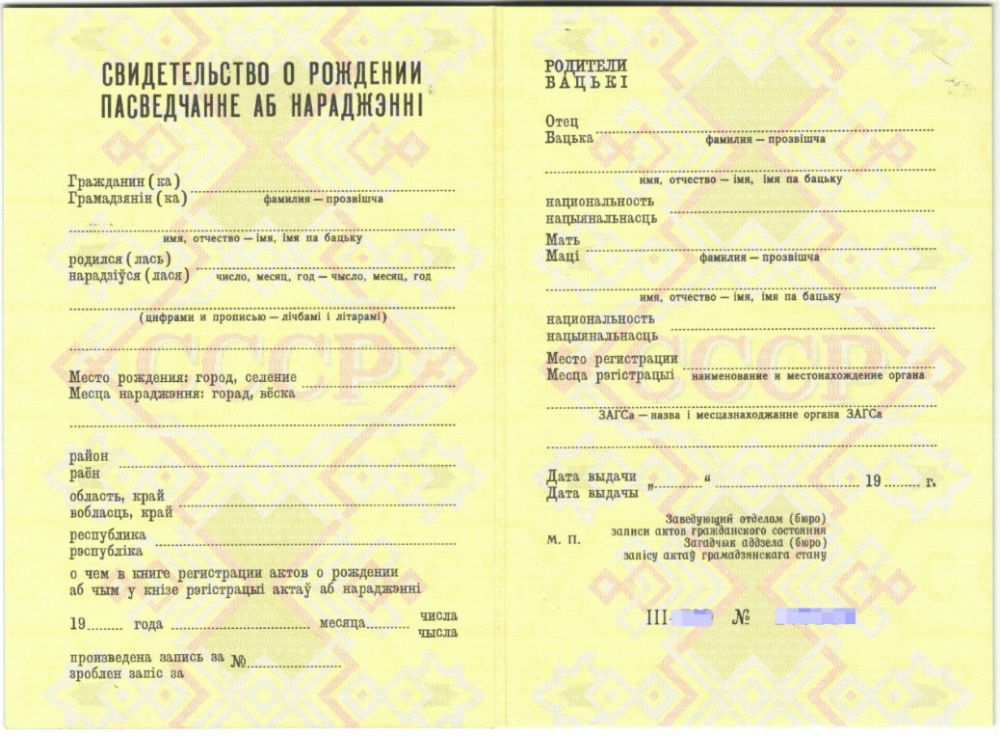 Свидетельство о рождении Беларусь 1971-1997