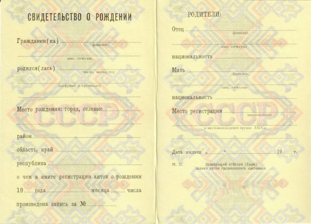 Свидетельство о рождении РСФСР 1971-1989